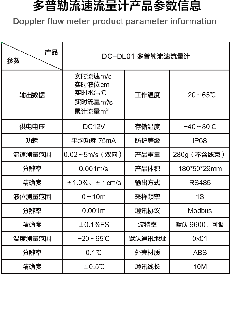 LC-DL01多普勒流速流量計(jì)是一款基于超聲波多普勒原理設(shè)計(jì)的高精度測(cè)流設(shè)備。它通過(guò)內(nèi)部集成的信號(hào)處理器和專有流速計(jì)算算法,能夠快速準(zhǔn)確地測(cè)量水體流速,無(wú)需校準(zhǔn)且測(cè)量無(wú)漂移。該設(shè)備不僅集成了水溫傳感器和壓力傳感器,還能同時(shí)采集輸出水位數(shù)據(jù),實(shí)現(xiàn)水位、流速、水溫的一體監(jiān)測(cè).廣泛應(yīng)用于灌區(qū)渠道、自然河道、城市排水管網(wǎng)、工廠計(jì)量、泵站等各種場(chǎng)合,為流量監(jiān)測(cè)和管理提供可靠的技術(shù)支持。