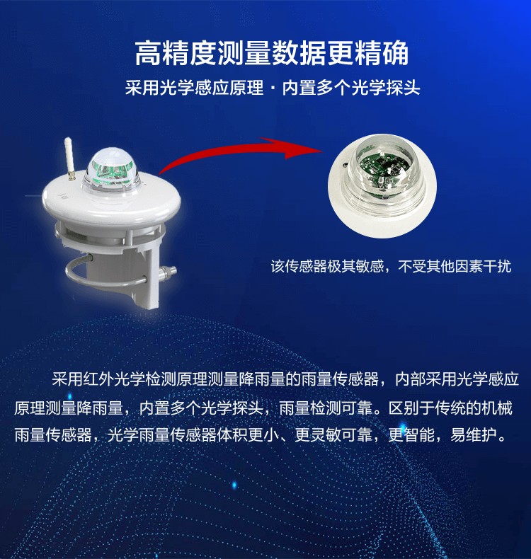 LC-GYL1光學雨量傳感器是一種通過高精度光學元件感知雨滴的密度和速度,實現(xiàn)實時、準確的降雨量監(jiān)測傳感器。內(nèi)置多個光學探頭,結(jié)合可靠的遙測算法,使得傳感器在測量降雨量時表現(xiàn)出色,其靈敏度相較于傳統(tǒng)翻斗式雨量計提高了100倍。此外,該傳感器還具有長壽命、低功耗設計,以及免維護的特點,使得其在各種惡劣環(huán)境下都能穩(wěn)定運行。廣泛應用于惡劣環(huán)境下的自動雨量監(jiān)測。在暴雨、山洪、泥石流等災害性降水天氣的自動監(jiān)測、預警中起著關鍵作用。