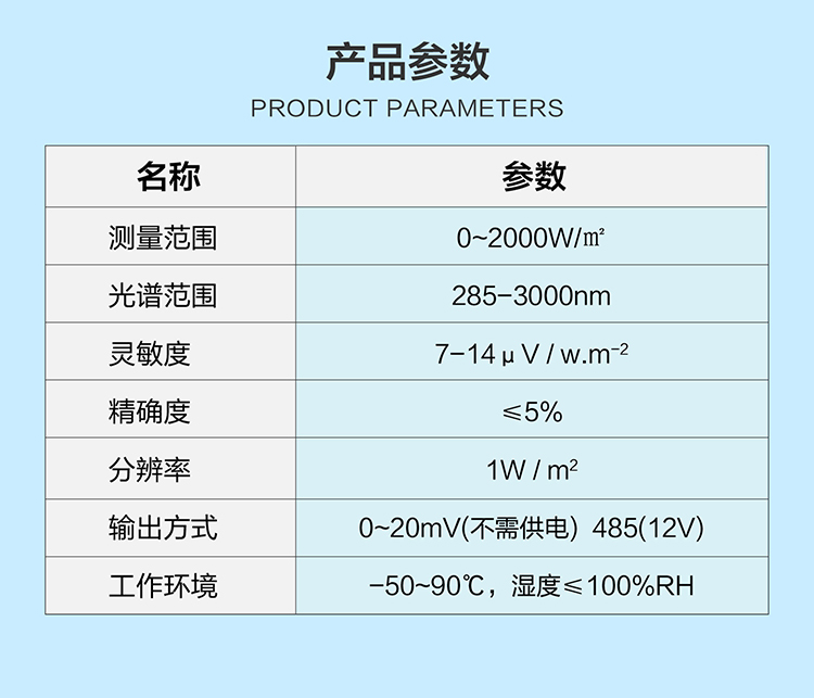 TBQ-2C-1太陽總輻射傳感器(classC)是一種專門用于測量太陽輻射能量的設備。它能夠精確感知太陽輻射的強度和能量變化,并將光能轉化為電信號,通過電路和算法處理得出太陽輻射的相關數據。根據工作原理的不同,太陽輻射傳感器主要分為光電式和熱電式兩種。